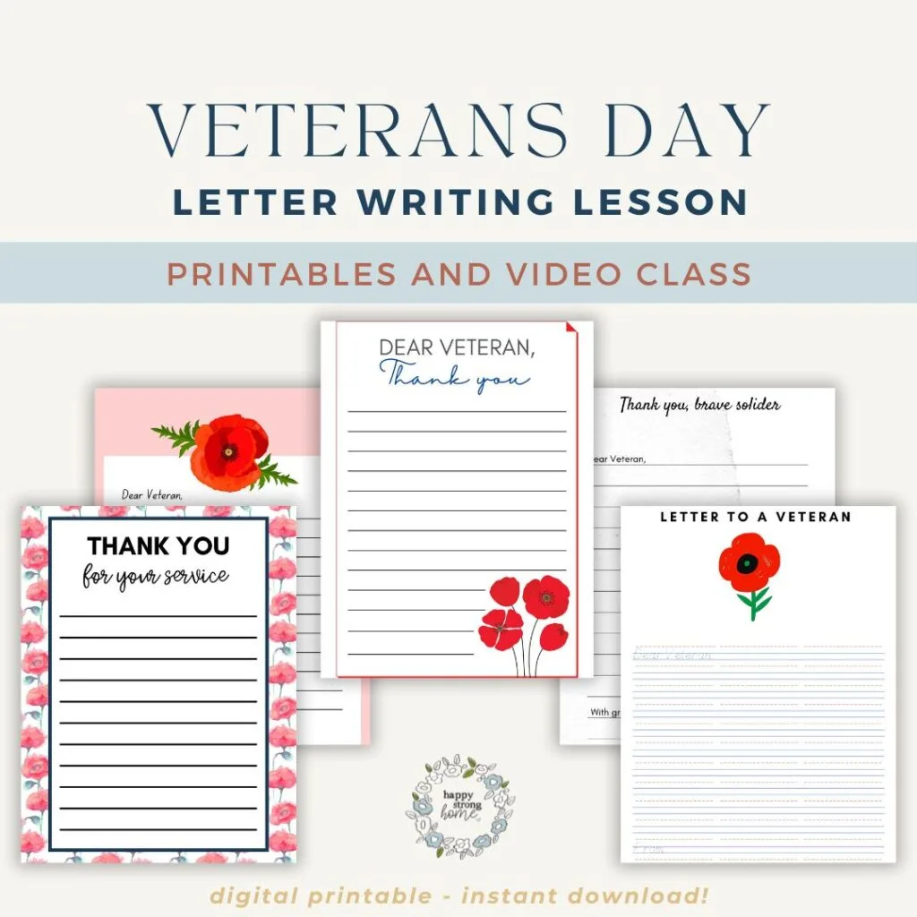 simply hop over to my shop where you can purchase the complete set of Veterans Day Letter Templates! You’ll be sent a PDF packet of printable resources including a link to the 15-minute video writing lesson.