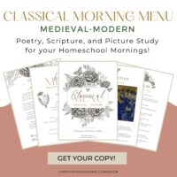 For our classical morning menu, I put morning time materials (printable) into a plastic menu folder and use them to guide our homeschooling day.