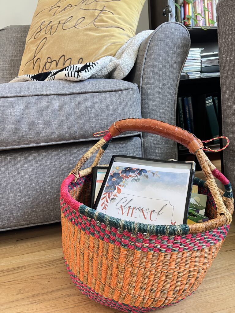 - Keep it visible but organized (our beautiful basket adds to the decor, but also limits how much I leave out.
