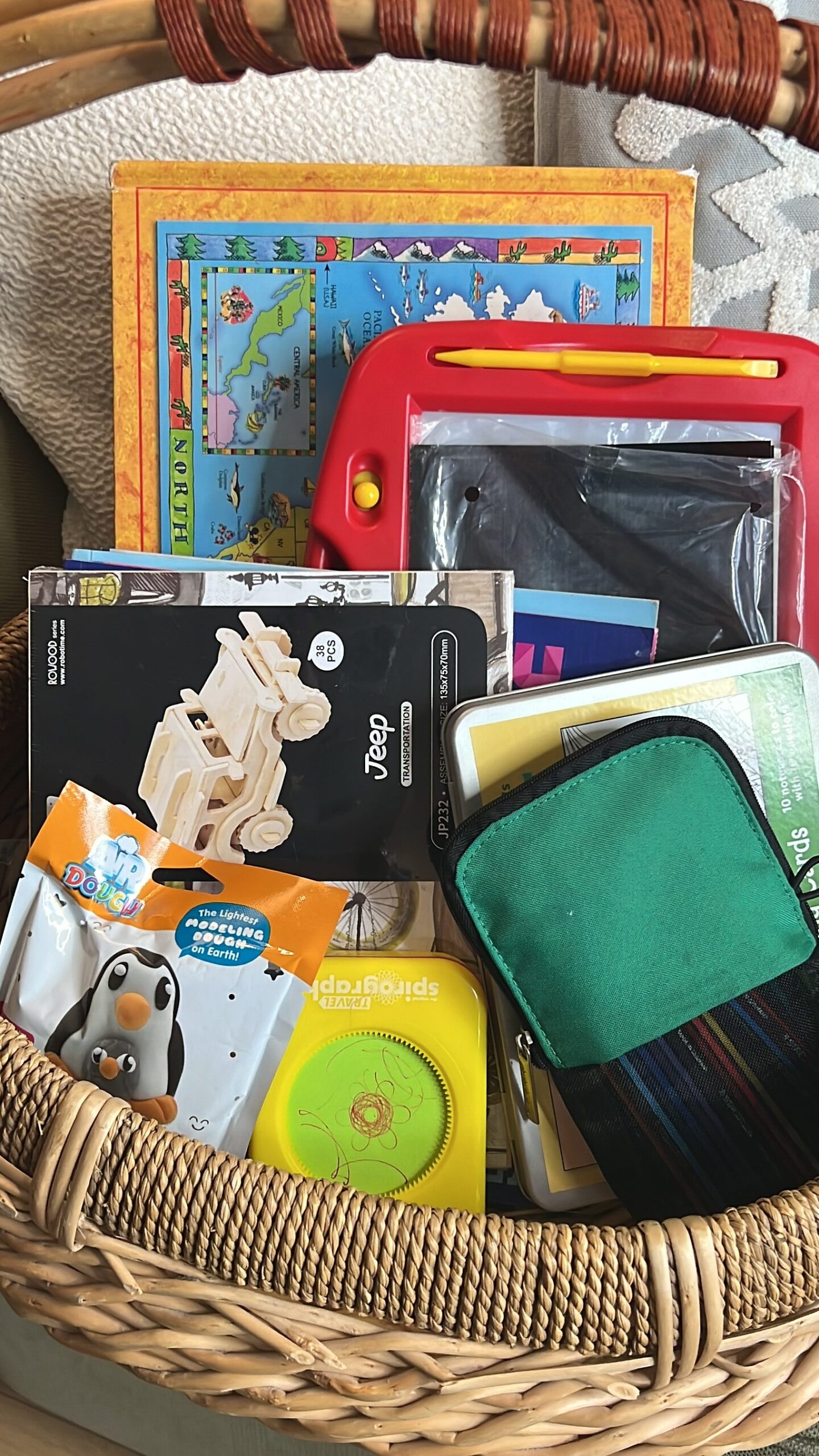 - Quiet fidget toys (beads, playdough mats, magnetic tiles)