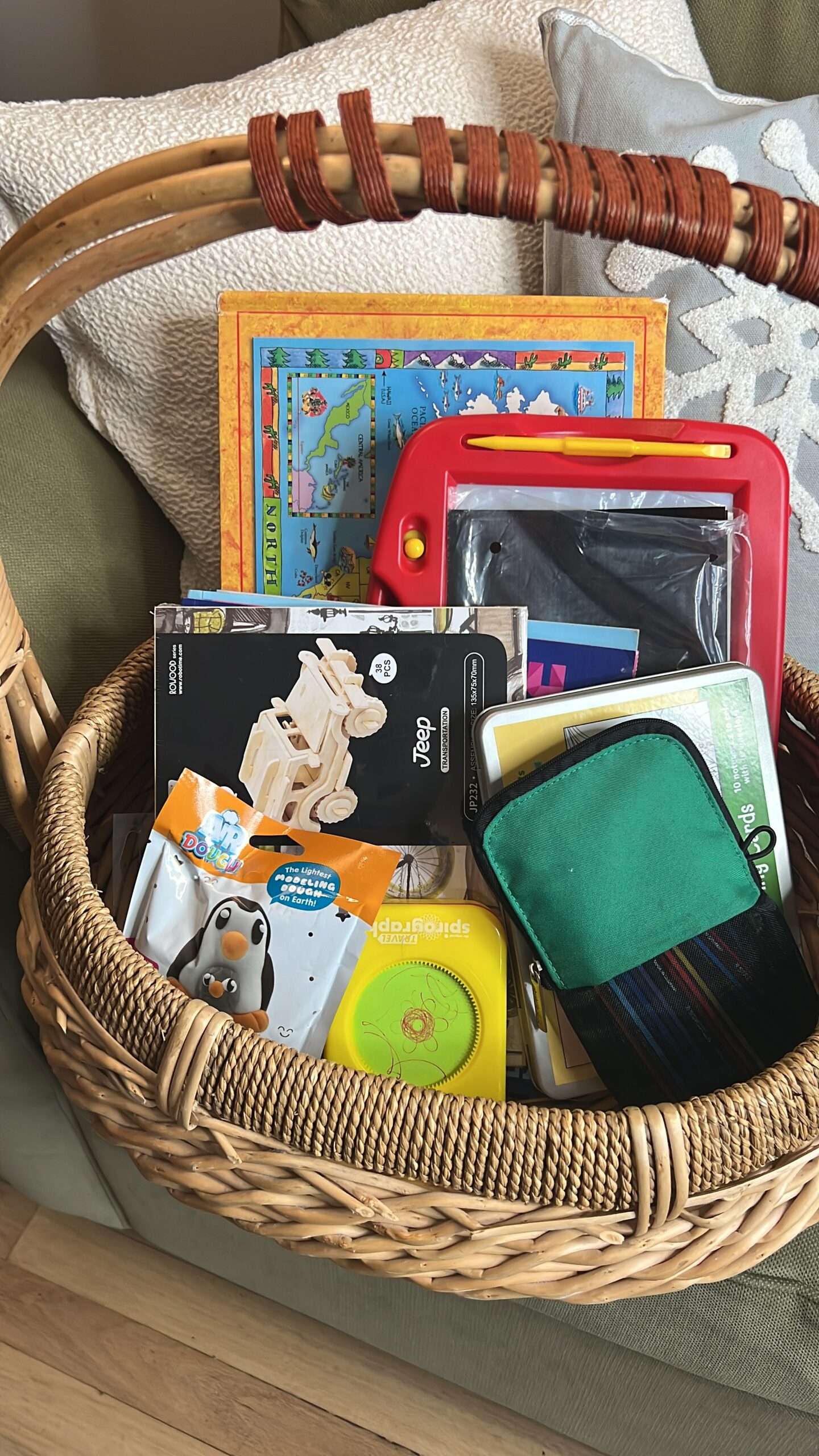 Simply put, it’s a container that holds a selection of activities kids can do quietly, allowing you to read, and everyone to listen. The benefits abound.