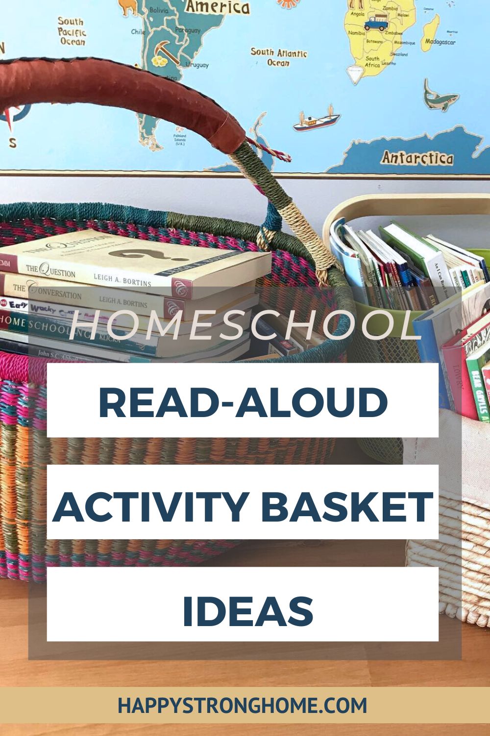 Putting Read-aloud activity ideas into a basket makes it more than just a junk-drawer of stuff. Use the activity basket for thematic organization, a rainy-day distraction, or a reset of your routines mid-year.