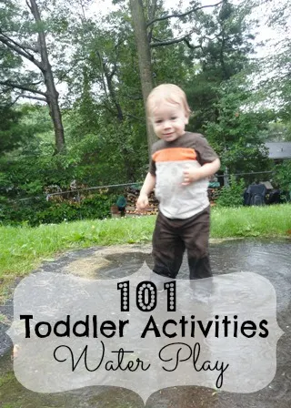 Remember being bored as a kid? I don’t even have TIME to be bored now, what with blog friends, Facebook, and Pinterest, I find at least a dozen new things I’d love to try. Kids get bored easily it seems. So I’m compiling a list of toddler activities to keep my little one engaged. When summer days are long and hot (or winter cabin fever sets in), I think I’ll be thankful to have this list handy. I hope you find it helpful too! We’ll start with some toddler water play activities, since summer is heating up!